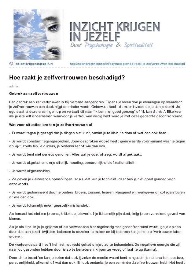 Inzichtkrijgeninjezelf Nl Hoe Raakt Je Zelfvertrouwen Beschadigd