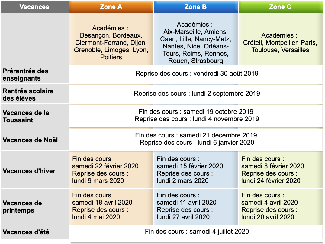 Calendrier Vacances Scolaires 2019 2020 Zone C Pratique Le