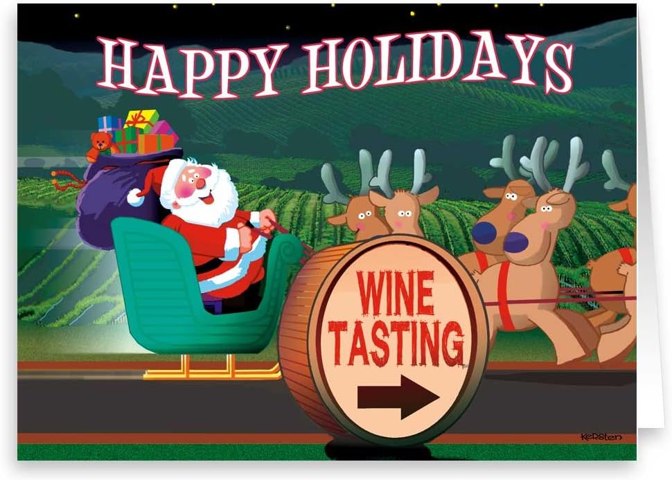 Amazon Com Santa Looks Happy Wine Tasting Christmas Card 18