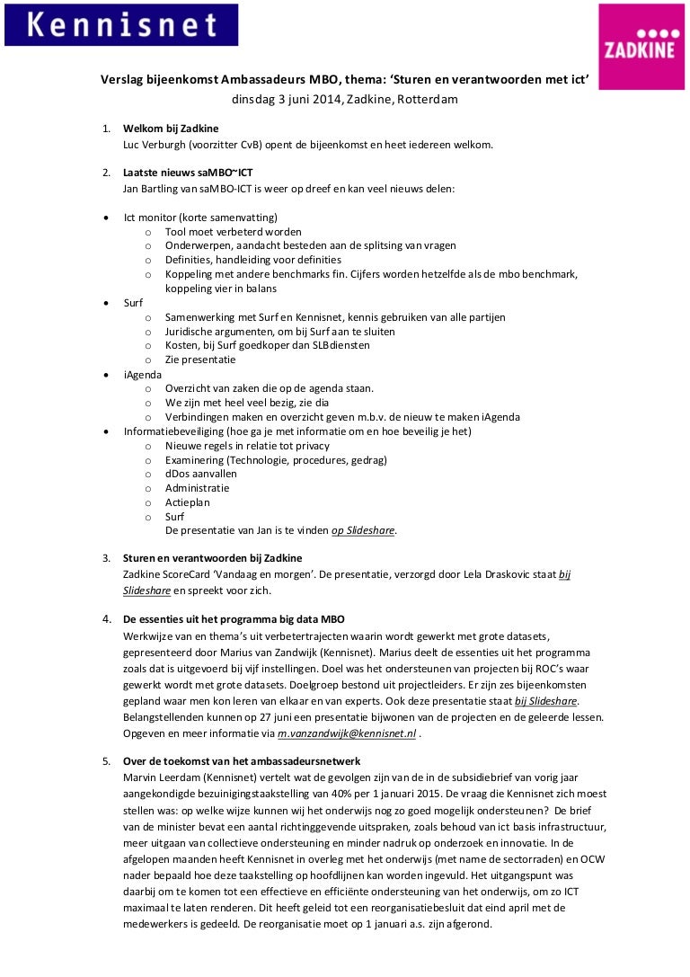Verslag Ambassadeursbijeenkomst Bij Zadkine 3 Juni 2014